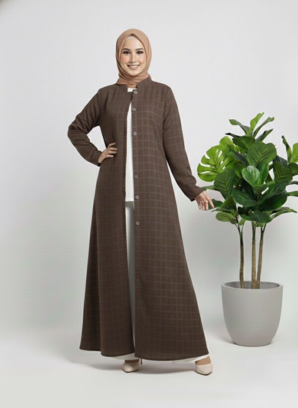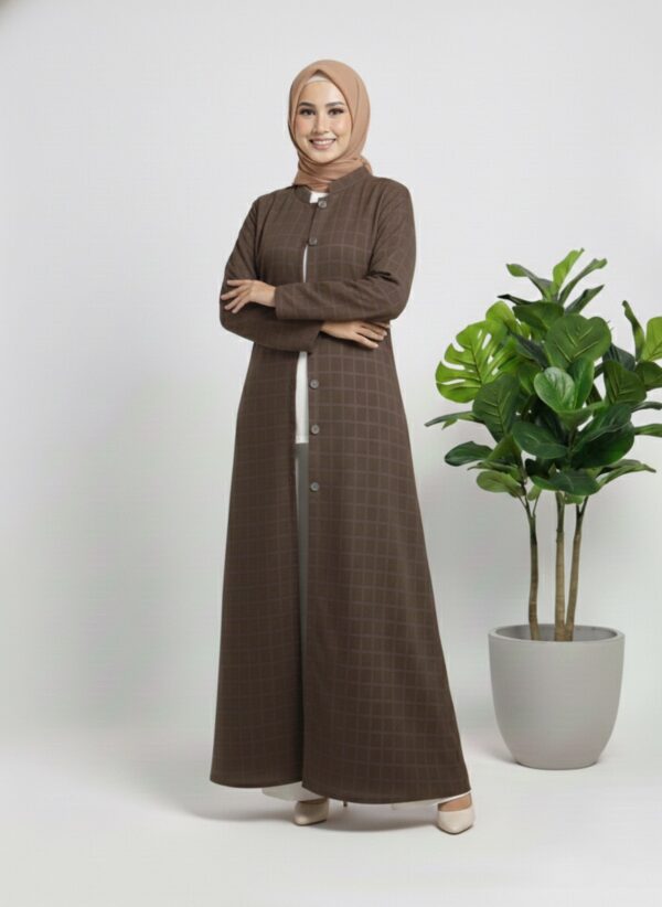 Designed with a front-button closure and a clean, minimal silhouette, Abaya Al Rabee blends timeless modest fashion with modern refinement. The flowing length adds elegance, while the coat-style structure provides warmth without compromising on style.